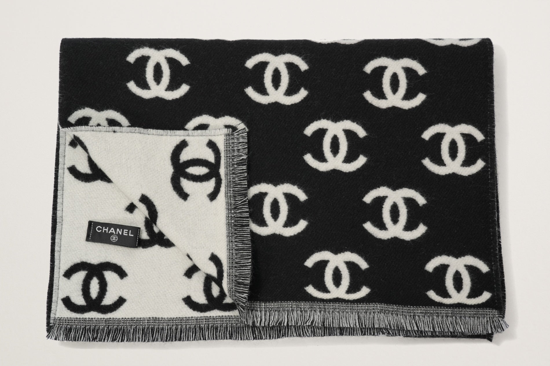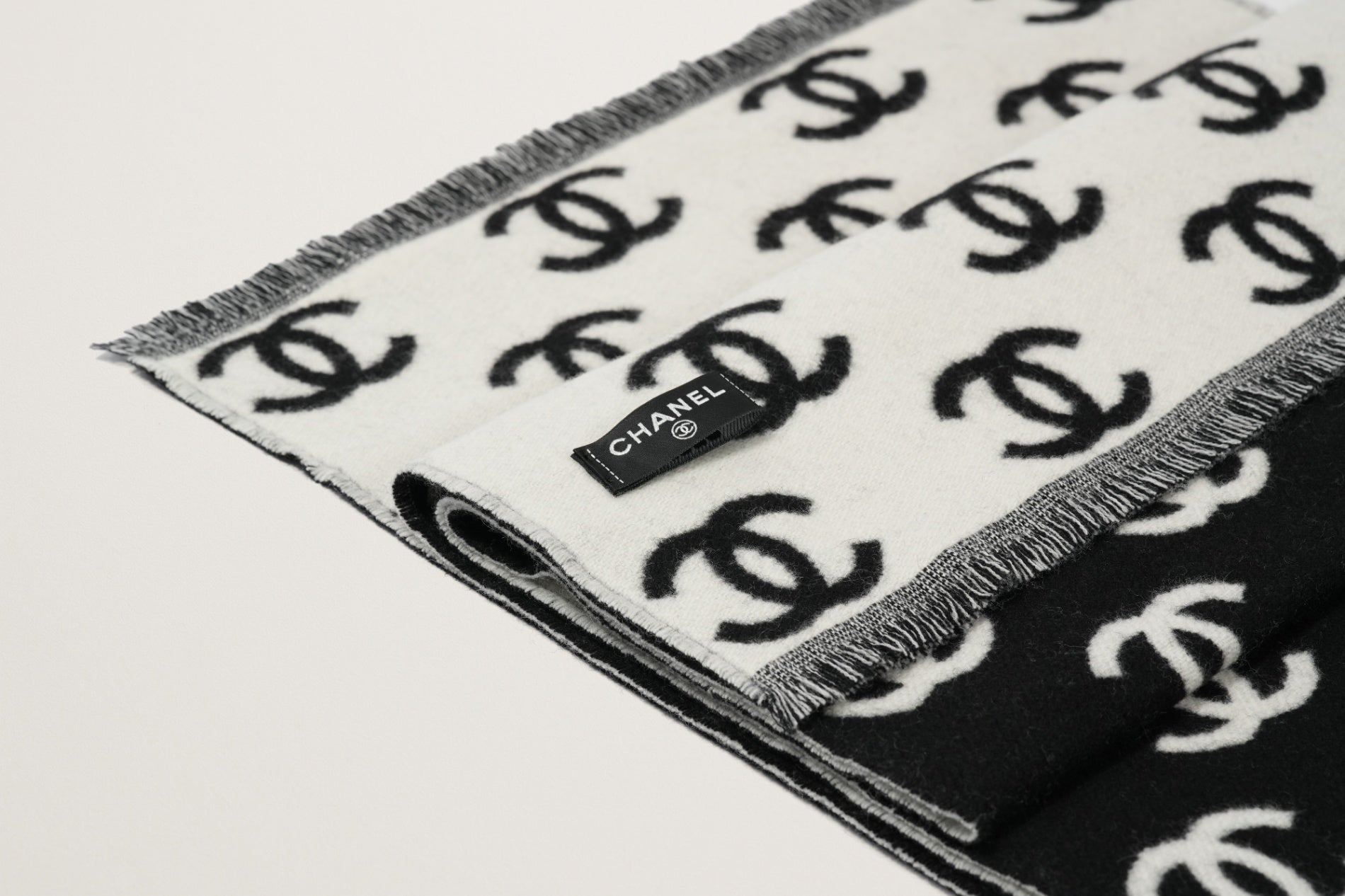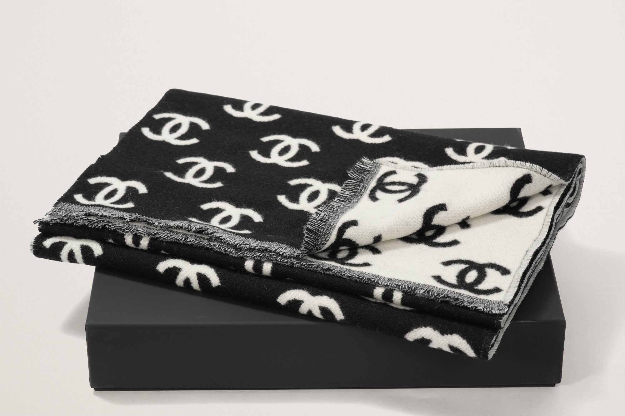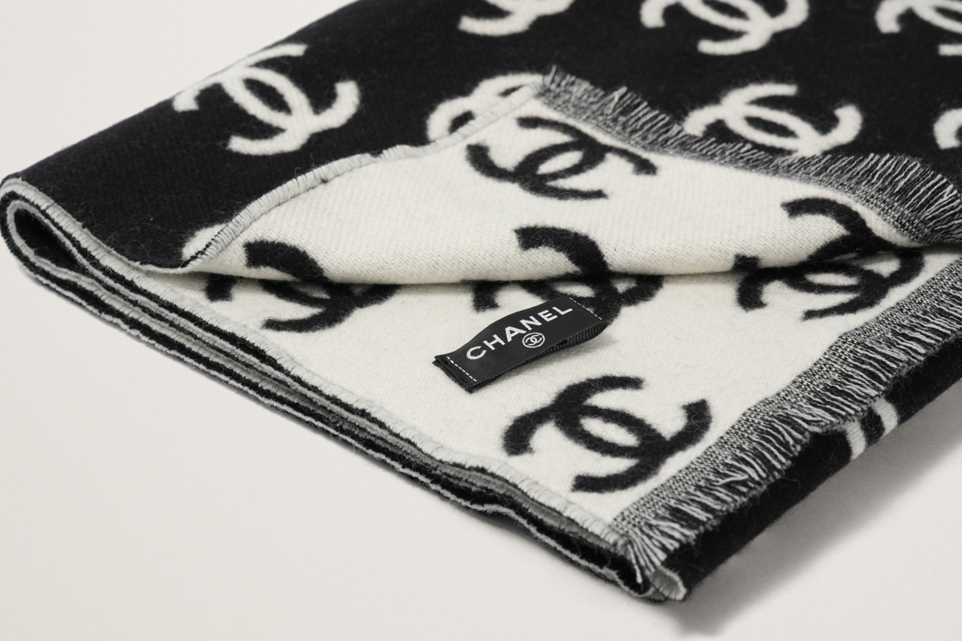 CHANEL カシミヤスカーフ 白/黒