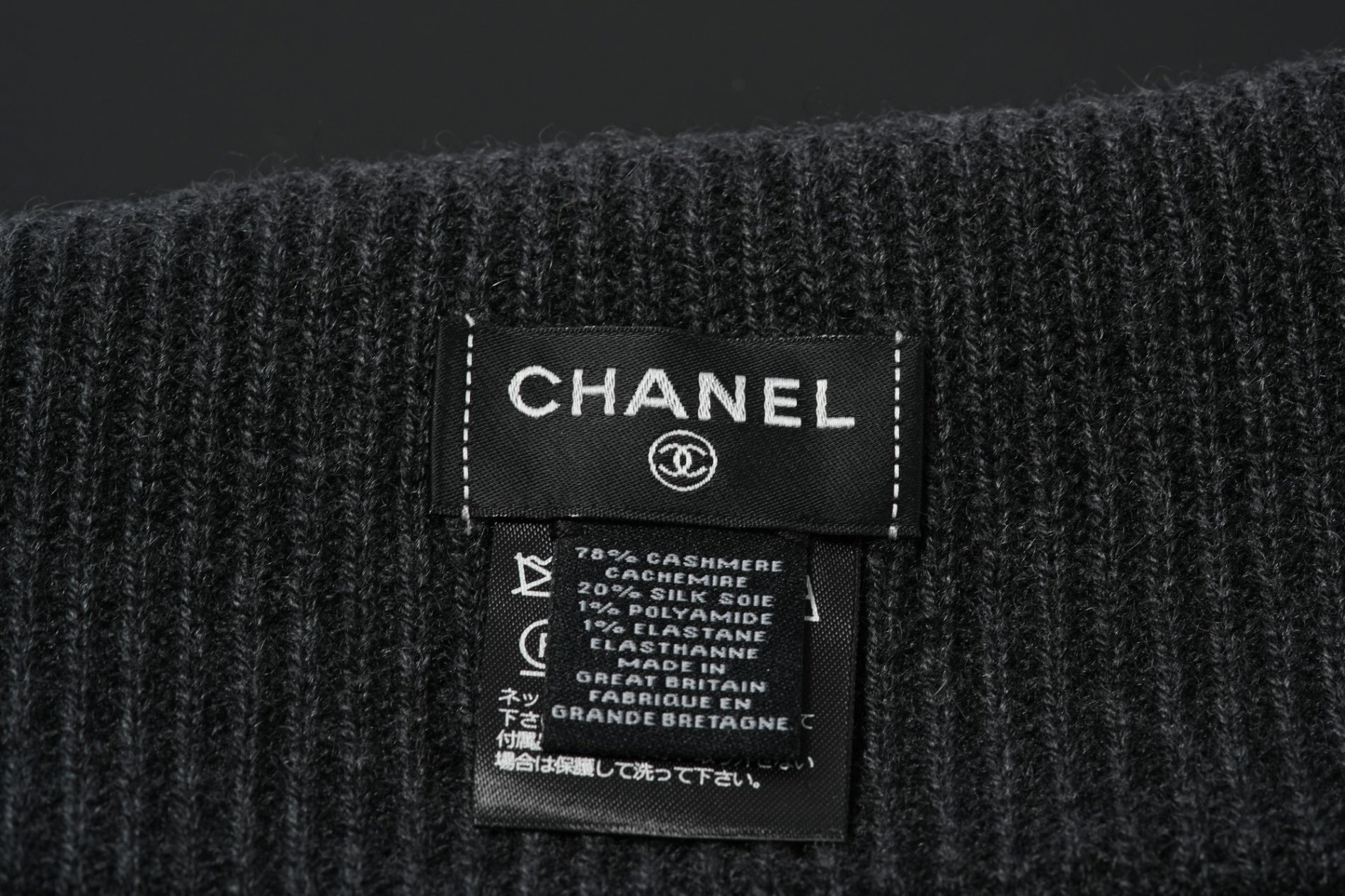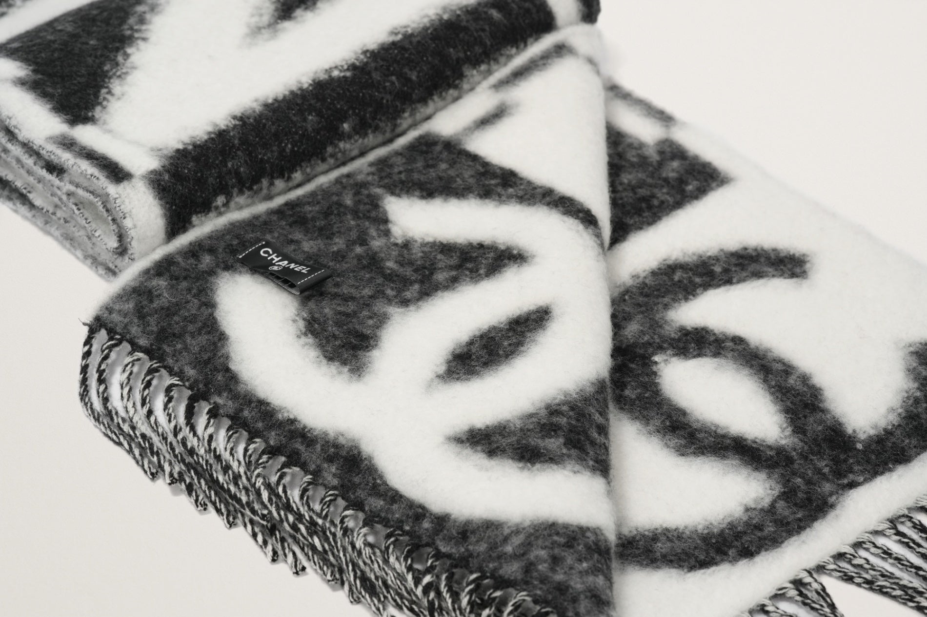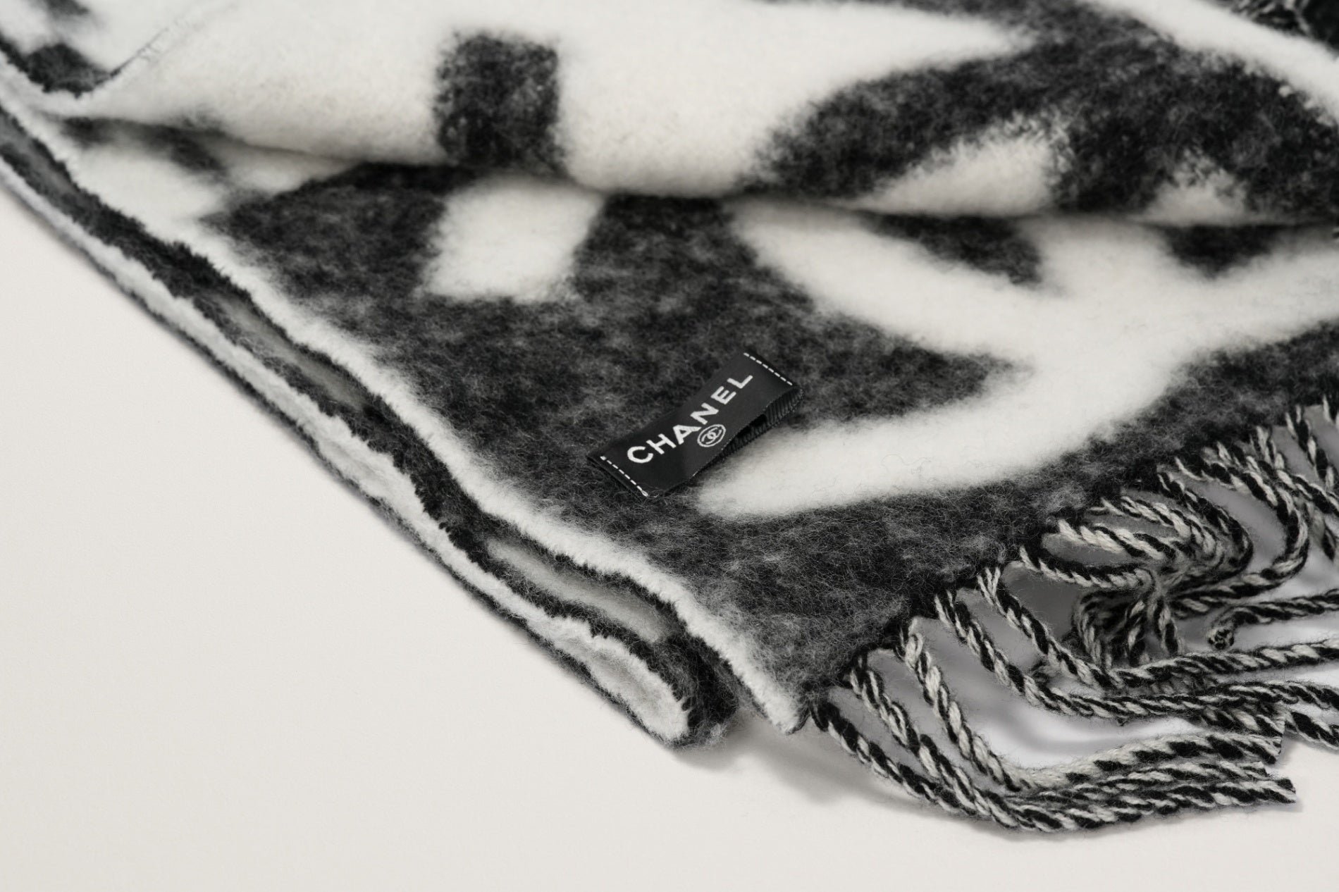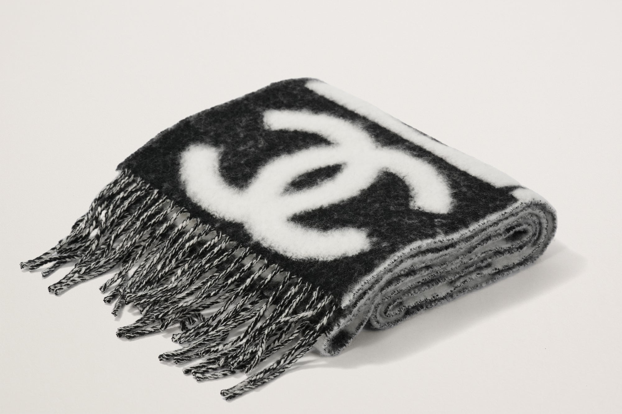 CHANEL カシミヤスカーフ 白/黒